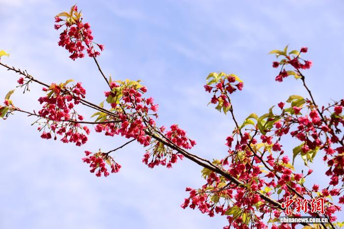 图为磨盘山丛林花园内乱开放的绯樱。 熊锦阳 摄