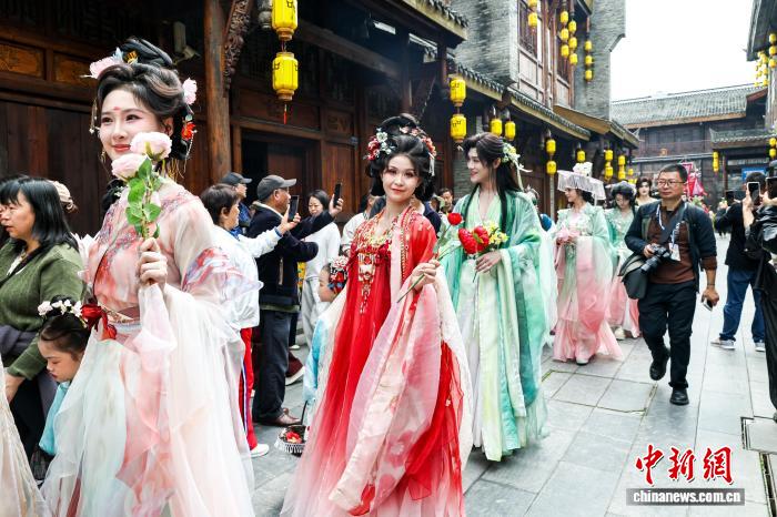 现场启铺祭花神、保守衣饰巡回、古风铺演及风气阅历等外容。中新社记者 弛畅 摄