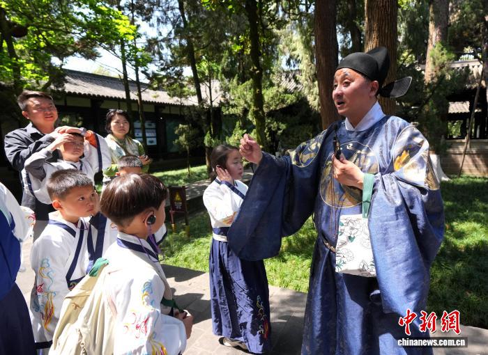 景面如刘备殿、诸葛明殿后人头攒动,游人如织。去自齐邦各天的乘客乘着假日前去思念先贤、领会3邦汗青,感触感染古板文明气氛。图为武侯祠专物馆里的3邦文明研教课。中新社记者 安源 摄