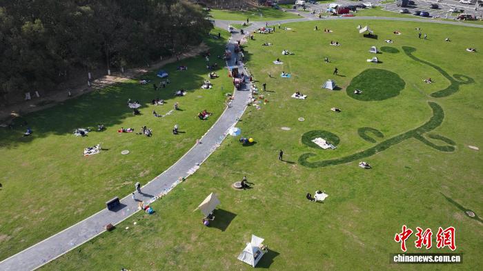图为正在磨盘山丛林花园草坪上戚忙露营的市平易近。 熊锦阳 摄