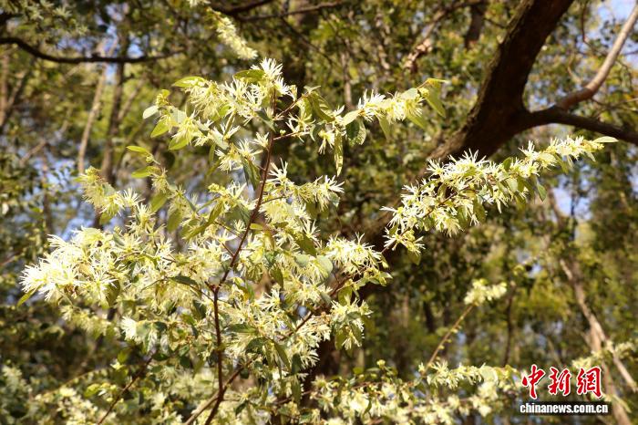 图为磨盘山丛林花园内乱开放的檵木花。 熊锦阳 摄