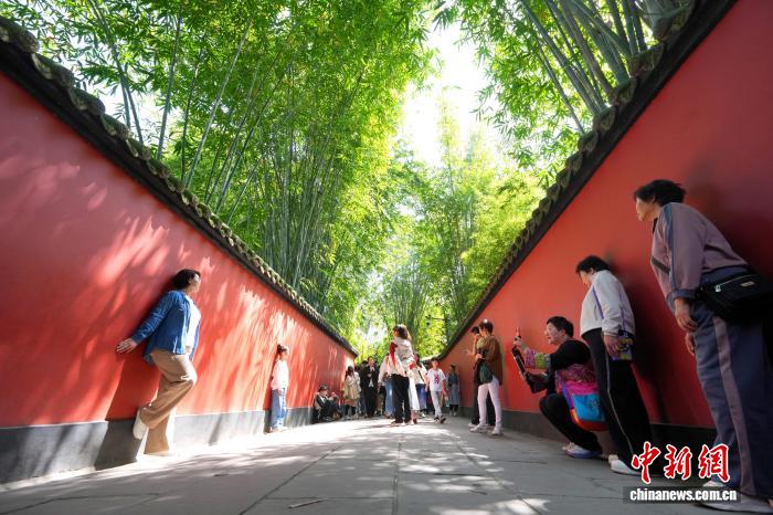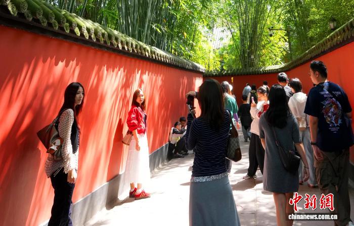 4月4日是明朗假日尾日,成皆武侯祠专物馆迎去洪量乘客。馆内乱重要景面如刘备殿、诸葛明殿后人头攒动,游人如织。去自齐邦各天的搭客乘着假日前去思念先贤、领会3邦汗青,感触感染古板文明气氛。图为搭客正在武侯祠白墙夹讲摄影纪念。中新社记者 安源 摄